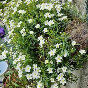 アレナリアモンタナがまた 花数が増えてきました。 ご近所さんと花*花交換で1株お嫁に行きました。代わりに金魚草をお迎えしました。