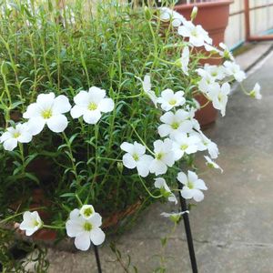 去年の春にお迎えしてpicできないままだったアレナリア。 花が終わった後鉢植えのまま放置してましたが、夏〜冬を越してまた咲き始めました😊 思い出した時の水やりのみで土替えも肥料もなしなのに...もりもり咲いてくれてます✨