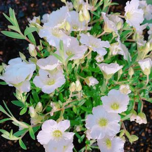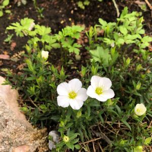 お庭で綺麗に咲いている真っ白な花です。名前を忘れないうちに投稿しておかなと・・。アレナリア ホワイトサマー。 調べてみると、高山や亜鉱山にさく多年草みたいです。夏には鉢上げして、涼しいところに置いておくと、来年、また咲くのかな・・。