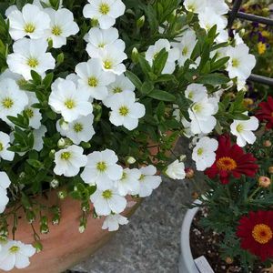花友さんにお花あげてたら、 お返しと持って来てくれました🌸 名前分からないそうでーす🌱 教えて下さい🪴 名前教えて頂きました。 アレナリアでした。 ありがとうございます😊