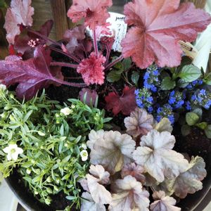 少し日陰のお花たち。ヒューケラ&アジュガ&アレナリアモンタナ