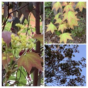 イタヤカエデ 板屋楓 ムクロジ科カエデ属 落葉高木 亜種や変種が多くイタヤカエデは総称のようです🍁 イタヤカエデはカエデの中では珍しく葉の出る前に花が咲くようです❤️💛 南国市 3/31 こんにちは 花友さんの畑にカエデの芽吹きが🍁 近寄ると花のようです💛❤️赤と黄色が鮮やかに覗いてます❤️💛 赤いのは花弁❓萼❓