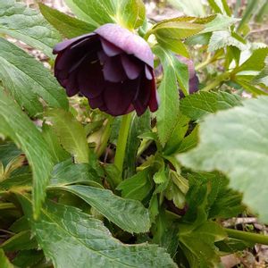 クリスマスローズの💜八重もモリモリしてきました😄 奥に水仙と雑草です🙏
