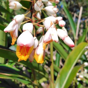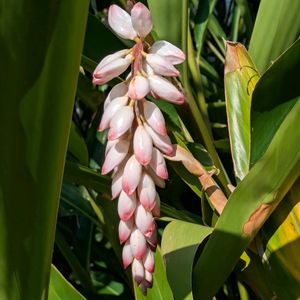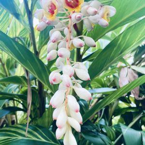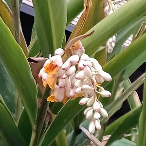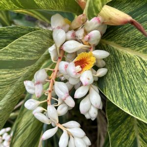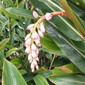 この間はツボミだけでしたが、今日は花も見られました。ピンクが多めのかわいらしい月桃です。