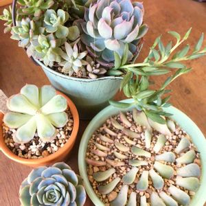 うちの棒ファーム🐣 頭をチョンパされた 親株たちを集めたところ お子ちゃまが次々生まれてきてますよ🌱 右手前の 4月下旬にカットした 魅惑の月は お子様も美人✨✨ やっぱ 遺伝か………