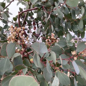 ☆庭のお花達☆ ユーカリポポラスの花 昨夜は、久しぶりの大雨、 今朝、雨が止んでる間(am9:30)に 撮影しました〜 11/13日picから1カ月経ちました 少しお花、増えたかな? 余り大きな変化は、ありませんが、 雨粒がキラリ光ってきれいです❣️