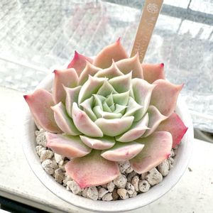 こちらも、韓国苗新品種 "アイスベリー"です。 名前からすると"ストロベリーアイス"とか"ベリー"とかの交配種っぽいのですが… コロッとしたロゼット&アヒル口の特徴が無く、何かとエレガンス系を掛けたような感じに見えます。 に、しても韓国苗って新品種多い^^; どんどん新しい品種が出て来ますよね。 ついて行けません^^;