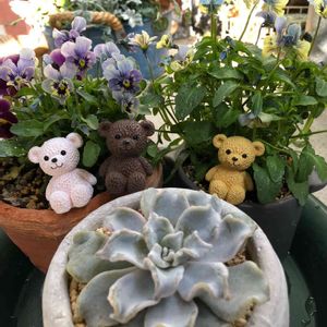 🐼シャンシャンが返還されて寂しい気持ちを 寄せ植えにしてみました💓 左側の大き目エケはリエールフェスでお迎えした桃太郎さん🍑 笹に見立てたのは桜竜🎋 むこうでも、楽しく元気に暮らしてね🐼