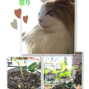 🐈ニャンニャン祭りに参加します🐈⬛ 🐱「暑い時期のタニパトはお断りにゃん」 て事で涼しいお部屋でのんびり過ごす リーちゃん💕 あとは昨日のゴーヤさん🌱🌱🌱左と 今日のゴーヤさん🌱🌱🌱右7cm位伸びてる😚