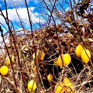 「キカラスウリ」の実 万博公園 花の丘方面の遊歩道脇の 蔓にぶら下がっている 熟すと黄色になる。 11〜12月 黄色に熟す 「カラスウリ」より大きい果実です