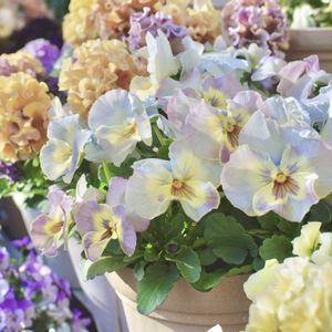 #ジョリーアンジュ 水彩画で描いたような美しい色合いがお気に入り💕 ※写真は昨年のです。 今年も、購入できました。 色幅たくさんあるので、どれにしようか悩む〜✨ ビオラパンジー買いたい欲が止まりません🤣