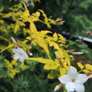 羽衣ジャスミン フィオナサンライズ 冬には葉っぱをほとんど落としてしまいましたが、春に芽吹いてからすっかり大きくなり、花を咲かせてくれました。 いきいきとした鮮やかな葉の黄色と白い花が元気をくれます😄 目を引く黄緑〜黄色なので、寄せ植えのアクセントにもおすすめしたい品種です。
