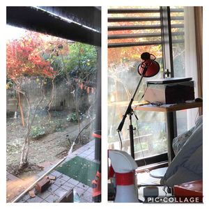パーゴラが台風で倒れ 上を覆っていたアケビの鬱蒼たる茂みが落ちすっかり日陰は無くなったので テラスの重厚な雰囲気は無くなり リビングも少し明るくなりました 大きな二重ガラスのトビラを通して27畳の端にある食卓まで、ドウダンツツジの輝くような紅葉が目に飛び込んできます 実際にはこの写真よりずっと透明で鮮やかに見えていますがスマホではこのようにボヤけてしか写りません、残念です 今、イタリアのズッシリと大きなテーブルに布やビニールのカバーをして雑多な物をごちゃごちゃ置いて、付属する豪華な革張りの6脚の椅子も4脚だけにして座布団を載せ、 ハゲた漆の大きな木のコーヒーカップにあったかいミルクココアを手に割引のアンパンをかじりながら、 自然の美しさをちぐはぐな雰囲気で見ています しかも庭の見える一等場所には一週間に一度泊まりがけでくる自閉症の孫のパソコンを置いてます 20歳を過ぎ大きな身体なのに幼児のよう 色んなハンデを持ちながら先日ささやかながら個展を開いて頂きました 立体を平面化した消したり訂正無しの絵を描きます 面白い感覚です
