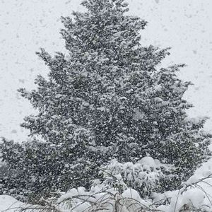 ユーカリの葉っぱに、初雪が積もりました。7日早朝✨✨日の出の庭より✨✨
