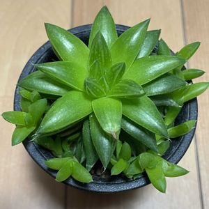子だくさんハオルチアさん、 名前は何だったかな笑 あ😲!葉が一枚茶色に😢