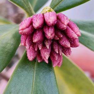 🩷ジンチョウゲ🩷 GS今日のお花 約1年前にお迎えし、初めての固い蕾が付きました。寒さで、表面がシワシワです。 ひとつ咲きだすと、甘い香りが放たれるそうですね〜
