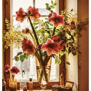 アマリリス 花言葉:「誇り」「おしゃべり」「輝くばかりの美しさ」 アマリリスに纏わる小噺を♡… 魑魅魍魎が蠢く大都会。アマリリスという片田舎 の少女は、夢と希望を胸に上京した。ある日、右 も左も分からない彼女は、偶然足を踏み入れた煌 びやかな繁華街で客引きの甘い言葉に誘われてし まい、その店のNo.1である「 花 」と「 子羊 」好 きのアルテミオに出会った瞬間、彼女は恋に落ち てしまう… どうにかして彼の心を掴みたいと願うアマリリス。 帰り道に占い館「 アフロディーテ 」の看板を目に した彼女は、意を決して中に入る。そこには、「恋 の女神 」と書かれたネームタグを、首からぶら下 げた老婆が待ち構えていた… 老婆は不気味な笑みを浮かべながら助言する。 「 この矢で自らの体を傷つけ、その血を男の家の扉 に塗りたくるのじゃ♡」狂気の沙汰と言うべき老婆 の言葉を、純粋無垢なアマリリスは疑うことなく 実行に移してしまう…赤く染まった扉を前に微笑む アマリリス。 そこへ夜勤明けに子羊を伴って帰宅したアルテミオ はその光景に驚愕し、すぐさま警察に通報しようと したが、背後から忍び寄った「アフロディーテ」の 老婆が眠り薬を嗅がせ、アルテミオは意識を失って しまう。そして、その身柄は愛(め)でたくアマリ リスへと引き渡されましたとさ…メデタシメデタシ♡