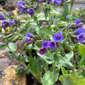 𓂃 𓈒𓏸プルモナリア💜オフィキナリス𓂃 𓈒𓏸 ムラサキ科 常緑多年草 この雨が 引っ張り出してくれたコ 開花はピンク … だんだんと 紫色になりそう(* ᴗ͈ˬᴗ͈)” GSアダルトチームお疲れ様☕️