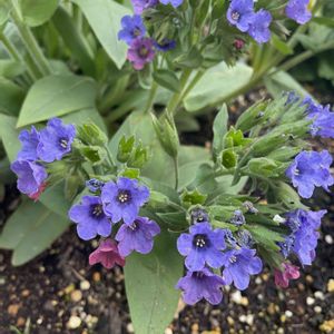 早春の花、プルモナリア オフィキナリスです😊 冬季は地上部無しなのに、必ず芽を🌱出してくれる✨✨新芽好きにはたまらない花です。 濃い青花のはずだけど、咲き出しにピンクが混じるんだよなぁと思ってました💙🩷 2枚目は新芽を出したところ🌱 ふきのとうみたいでかわいいです。 大事すぎて、消えると困るので😅 鉢で半軒下栽培です。 3〜5枚目。 あまり見ない苗ですが、2年前くらいに見つけ👀地植えに挑戦。 今のところうまくいってます。 地植えの方は青花なんだよなぁと見に行くと、ピンク🩷が出てる! ピンクのクリスマスローズとコラボしてステキ。 3月初旬の咲き出しは5枚目のブルーだったので、こちらは咲き進んでからピンクが出てきました。 ブルーの中にピンクの遺伝子🧬持ってるんでしょうね。 植物の神秘✨✨と勝手に感動してます🥹