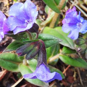 「デルフィニウム」??? 葉のようすがことなるよう。 とりあえず、パチリ Googleレンズで調査したところ 「プルモナリア・オフィキナリス」を提案。 Netの画像と比較し、提案を採用しました。