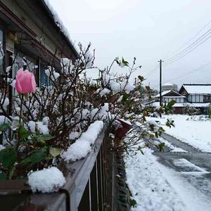雪をかぶったグリーンアイス(*^^*)💕 バラがまだ咲く時期に雪が積もるなんてビックリ💦