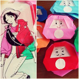 はじめまして❗ お散歩ちゃん、登場しました。😆 お花でなく みんなで作っただるまさん。 明日から 折り紙の椿とともに 壁面に飾ります🎵 お散歩ちゃんには だるまさんを まとってもらいました。😘 🏷️お散歩ちゃんキーフォルダー🏷️