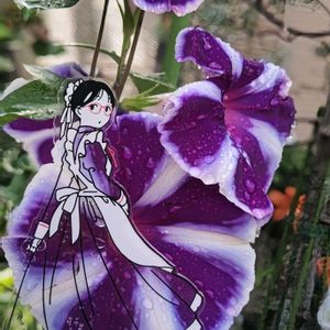 曜白朝顔 富士の紫 ① ももこさんパレオスタイル ② すみれちゃん水着 ③ リリーちゃん水着 ④ すみれちゃんメイドスタイル ⑤ 7/18 曜白朝顔 10輪開花 7/17まで、108輪 合計118輪開花 しまい込んでいたお散歩ちゃん 久しぶりに着せ替え遊び