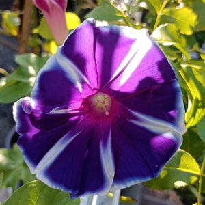 曜白朝顔 富士の紫 茄子紺に白いラインが美しい曜白朝顔 連日の炎暑にも負けずに咲き続けてる。 あっぱれな咲きっぷり。 6/17の初開花から〜7/26まで 191輪 7/27 10輪 7/28 13輪 7/29 22輪 7/30 18輪 7/31 18輪 〜合計 272輪開花 2025/0731pic 記念に花手水を作ってみたが、鉢が浅く 残念な事に。 記念撮影。