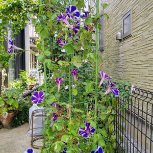 曜白朝顔 富士の紫 植木鉢で育てた一株の苗 何が良かったたのか?見事に花を咲かせて。 8/19日には、遂に500開花、達成🎉🎊 朝顔の行灯仕立ては初めて。 お盆あけから、流石に葉も少なく、黄色くなって、花も美しくは開花できない。 あっぱれな咲きっぷり、記録しておきたいな。 お盆明けから、ひねた咲き方も多く計数しづらいので、翌朝、咲き殻を数えて。