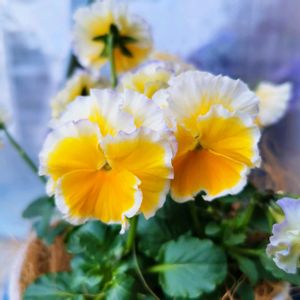 🏷日曜ビタミンカラー♪ 🏷幸せの黄色いお花 🏷ビオラ・パンジー祭り♪ 🏷ビューティフルサンデー サトウ園芸さんの ビオラ「エッグタルト」💟 今年は2株購入できました🎶 色幅・個体差があり楽しいです🟡🤍 白身の多いタルトさん✨🤍 花びらの縁にほんのりブルーが 楽しみです(*˘︶˘*).。*♡🩵 一緒に植えたほうが良かったかな~と 今、思っています😅