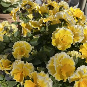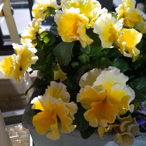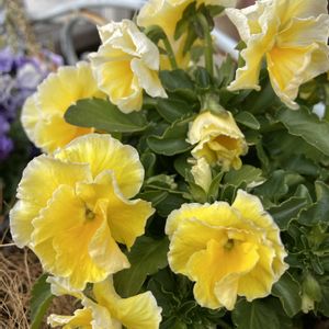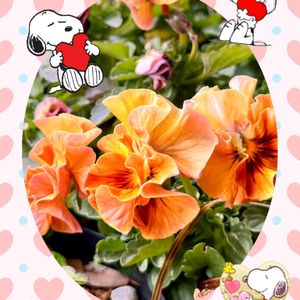 🏷️毎月2日はスヌーピーの日 バレンタインバ-ジョン❣️ 🏷️日曜ビタミンカラー♪ 🏷️オレンジ色の花も好き 🏷️黄色いお花大好き協会 🏷️幸せの黄色いお花 パンジー💟 名前は不明ですがフリルが綺麗✨ 3️⃣はビオラ💟「エッグタルト🟡」 少しずつ咲き初めています🎶