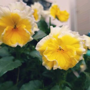 ビオラ エッグタルト モリモリになって来て、すでに狭そうです。白い覆輪の出方で二株有る様に見えますね🌱💛🤍