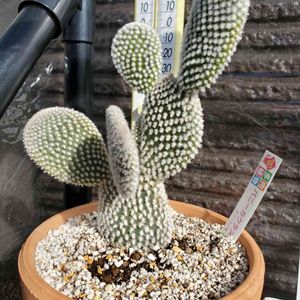 バニーちゃん🌵✨ 大所帯からの…仕立て直し😅 厳選?した7枚のみに… 今回は…前と後ろができないように…公平に、1週間ごとに鉢をクルクル回していこうと思っております✨ これは 9月末に植え替えた時に撮ったもの。 そして、今日見てみると… もう すでにお子ちゃま🌵✨が… 出てきてる😂 すごい生命力✨✨