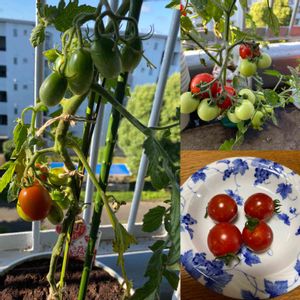 初プランターミニトマトの初収穫🍅😆✨ 1番手はシュガープラム🍅 色づき始めて1週間しないで熟しました😊 そして、プランター栽培なのに甘い‼︎‼︎😍 普通に育てただけなのに✨ さすが高糖度トマト🍅✨