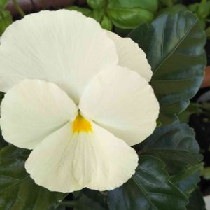 イタリアのパンジー、後輩くんその3も白でした👩🌾 成長が遅く心配でしたが何とか開花までいきました😊