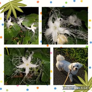 真夏の夜 生温かい空気の中で 真っ白なカラスウリ (夜遊びの季節です𖤐.*゚)