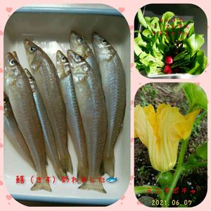今日は朝からめちゃくちゃ暑くて 気温は28〜29℃😱💦 なので朝は、お花に水やりして、ズッキーニとミニカボチャを受粉させてお家に引っ込んでた。 旦那さんは、早朝から釣りに出掛けた。 昼くらいに戻り、今日はまあまあ釣れたみたい。 最近何度も行っているのでその度に天ぷらにしていたけど、少し飽きたので 今夜は南蛮漬けにするかな。😊🎵 ルッコラ、リーフレタス、ラディッシュはサラダに。😁🎶