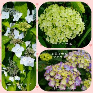 アナベルようやく開花し始めた。 アジサイも少しずつ色が出てきた。 ヤマアジサイの色、今年は薄いような気がする。 アジサイは土や雨などで色が変わるから不思議だね。 見ていて飽きない好きな花です。😊🎶