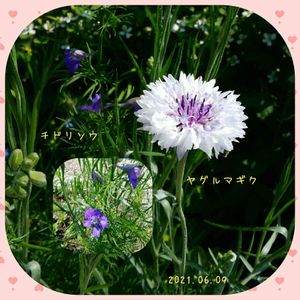 このお花は何かなぁ〜と咲くのを楽しみにしていたらチドリソウだった。 去年のミックスシードから咲いたものの こぼれ種からかも。 去年より大きく咲いてくれそう😊🎶 そばで咲いてるこのヤグルマギクの色 かわいいなぁ。😆✨