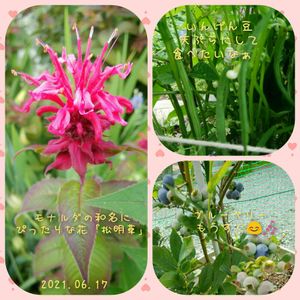 今日もくもりで蒸してました〜。 モナルダの赤い花は和名のタイマツソウそのものですね。🎶 インゲン豆がいっぱいなり始めました。 もう少し太くなるまで待とう😅 ブルーベリーも色付き始めました。 今年もまあまあの出来。✌️😆