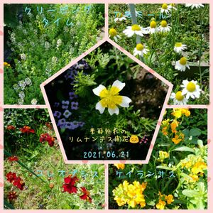 フレッシュハーブティーが美味しいです。 季節外れのリムナンテス、初めての開花。 嬉しいなぁ〜💕(単純な私😅) クリーピングタイム伸び過ぎだね〜。 うちのコレオプシスはコスモスに似てるね。 ケイランサスは花が終わって根本で切り詰めておいたのに、また伸びてきて花が咲き出しました。 強い子ですね。😆🎶
