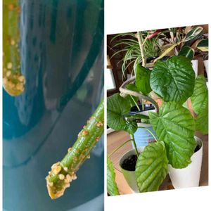 フィカスウンベラータ... カットした枝にツブツブが出てきたから 鉢に植えます🌱 元気に育って欲しなぁ〜
