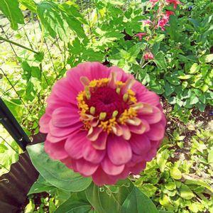 百日草 ジニア クィーン レットライム 種から育ててやっと咲きました❤️ 2019/06/29