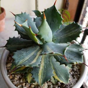 初めてのアガベ【ホリダ】❣️ 改築する友達から…鉢減らしの為に貰い受けました😆 植え替えで、何度棘が刺さったか😭 かなり鋭いのね😂 上手に育てられるか自信はありませんが…頑張ります😤