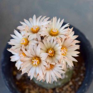 5年くらい前に鶴仙園で一目惚れして連れ帰ったハウエルニギーです😊 以前サボテンを植え替えた時に枯らしてしまった事があり、怖くてずっと放置してましたが今年の春初めて植え替えしてらこんなに花が咲きました💜💚💙