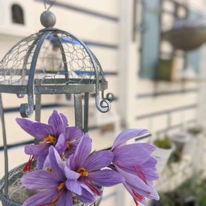 我が家にもとうとう転がし栽培のサフランが咲いてきました💜 10月中旬に芽を出して、今朝開花してくれました♬ 水無し、土無し、肥料無し✨ 生命力の素晴らしさ✨見せてもらえました🥰