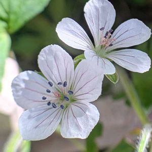 ゲンノショウコ 散歩道では中々会うことが出来ませんでしたが 庭で咲いてくれました😊 前に植えたのの種が残っていたみたいで今、気がつきました🤗良かった〜🎶🎶🎶 2,枚目も庭で咲いていた ツユクサ色でここだよと主張しています💙 雑草でも憎めないツユクサです💙🎶