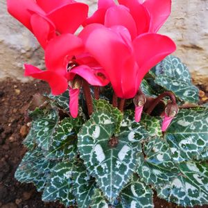 シクラメン💃 班入りの葉っぱ🌿も可愛いです。😘 今朝の通勤途中で出会いました🏃♀️