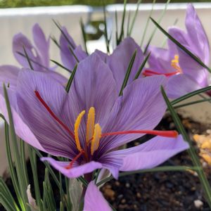 今日のお花 サフラン 次々と咲いてとても楽しませてくれました そして蕊もたくさん取れました 3枚目の写真は日曜日に撮った写真 萎んだ花を取り除くと葉っぱがぐんぐん伸びてきました 最後の蕾は朝起きたら咲いているかな‥‥