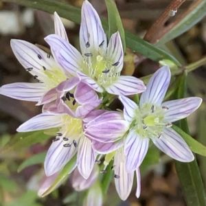 今日のお花 千振 白地に紫の筋が可愛らしいです 2枚目は紫千振 美しい紫色でインパクトありますが 苦味は千振より薄いらしいです 今月初めの写真 今年は両方見ることができて大満足でした